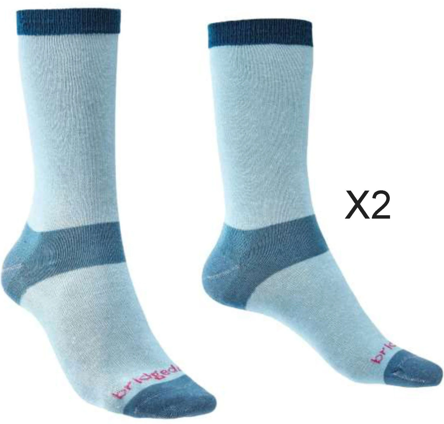 TWIN PAIR PACK Bridgedale Women’s Ultra-Lightweight Coolmax Liner Socks. Crew Length liner socks designed to be worn for comfort, anti-blister rub issues, additional warmth and long distant trail walks. With Coolmax® to help keep your feet dry and protected.